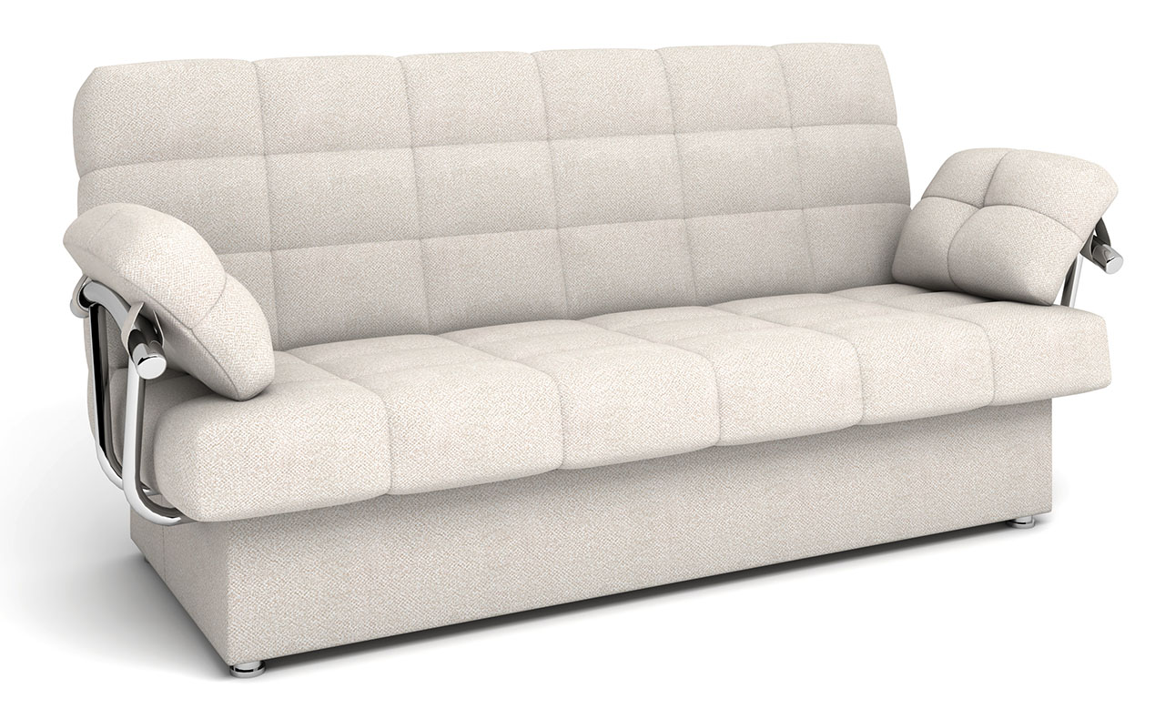 Отличительной чертой дивана являются стильные хромированные металлические подлокотники, специально подобранные под данную модель.