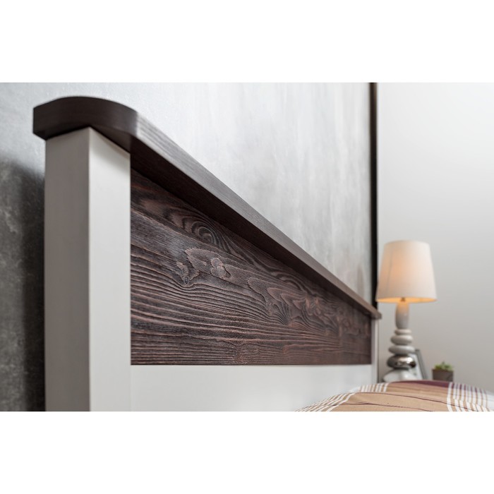 Двуспальная кровать из коллекции Норвуд выглядит свежо и современно. Модуль имеет лаконичный дизайн и простые геометрические формы, которые легко обыграть в интерьерах разных стилей. Выразительность кровати придают опоры со скосом и брашированная вставка в изголовье в декоре Орех шоколадный.