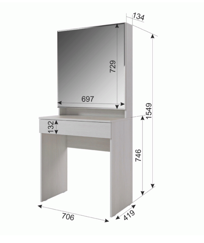 Компактное и стильное трюмо «Аурика» хорошо впишется в спальню, прихожую и даже детскую.